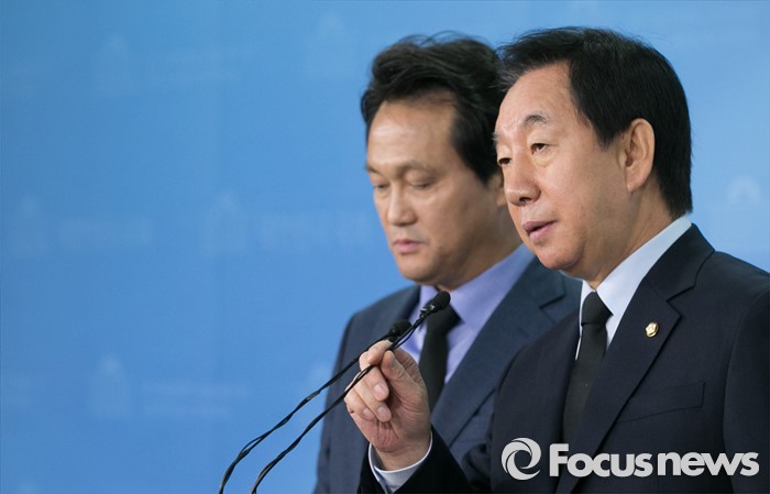 김 의원은 "지금 새누리당의 전국위원회 무산 위기, 지도부 공백 상태를 헤쳐가나는 중심은 정진석 원내대표의 소신과 의지에 달려 있다고 해도 과언이 아니"라며 "원내대표의 리더십이 일방적으로 손상되는 그런 정치적 행위는 결코 있어서는 안 된다"고 주장했다.(서울=포커스뉴스) 26일 오전 서울 여의도 국회 정론관에서 예산결산특별위원회 김성태(오른쪽) 여당 간사, 안민석 야당 간사가 내년도 국회의원 세비 동결 등 예산안 관련 브리핑을 하고 있다. 여야는 지난 17일 운영위원회에서 내년도 국회의원 세비를 인상하는 예산안을 의결해 예결위로 넘겼지만, 비판 여론이 거세지자 세비 인상분을 반납하겠다고 전했다. 2015.11.26 박동욱 기자