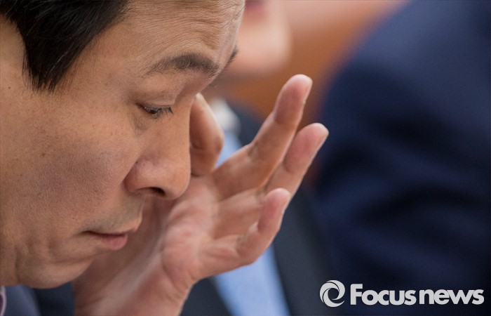 (서울=포커스뉴스) 19일 오전 여의도 국회에서 열린 더불어민주당 원내대표단 회의에 참석한 우상호 신임 원내대표가 자료를 살펴보고 있다.