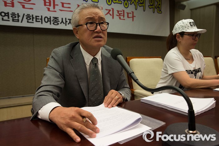 (서울=포커스뉴스) 19일 오전 서울 종로구 프레스센터에서 열린 '성매매 특별법 헌재 판결에 대한 성 노동자 기자회견'에 참석한 강현준 한터전국연합대표가 발언하고 있다.
