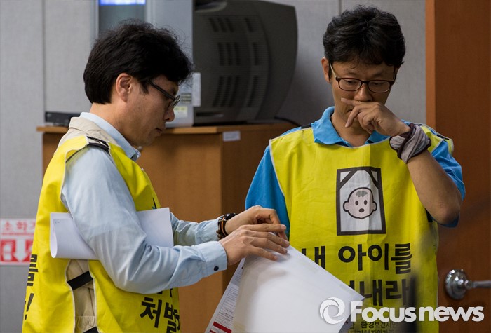 (서울=포커스뉴스) 19일 오전 여의도 국회 정론관에서 열린 '가습기살균제 피해 접수 결과 보고' 관련 기자회견에 참석한 가습기살균제 피해자 가족 안성우(오른쪽)씨가 굳은 표정을 짓고 있다.