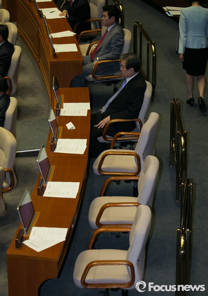(서울=포커스뉴스) 19일 오전 서울 여의도 국회에서 열린 342회 국회(임시회) 1차 본회의에 새누리당 전 최고위원들의 빈 자리가 보이고 있다.