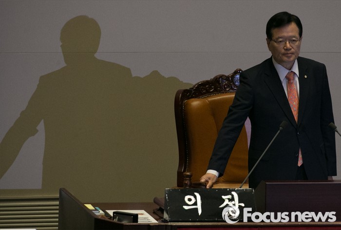 (서울=포커스뉴스) 19일 오전 서울 여의도 국회에서 열린 342회 국회(임시회) 1차 본회의에 참석한 정의화 국회의장이 안건 의결을 하고 있다.