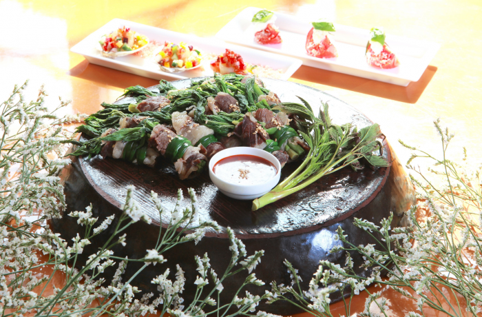 이번에 선보이는 힐링푸드 메뉴로는 △영양을 골고루 갖춘 영양솥밥 △쫄깃한 식감의 찰흙미 쌈밥 △몸에 좋은 취나물 쌈밥 △맛과 영양을 갖춘 약선 쇠고기 야채말이 △신선한 삼채나물 △건강을 생각한 두부버섯 스테이크 △비타민과 미네랄이 풍부한 디톡스 주스와 베리펀치 등 맛과 건강까지 생각한 20여종의 메뉴를 맛 볼 수 있다.