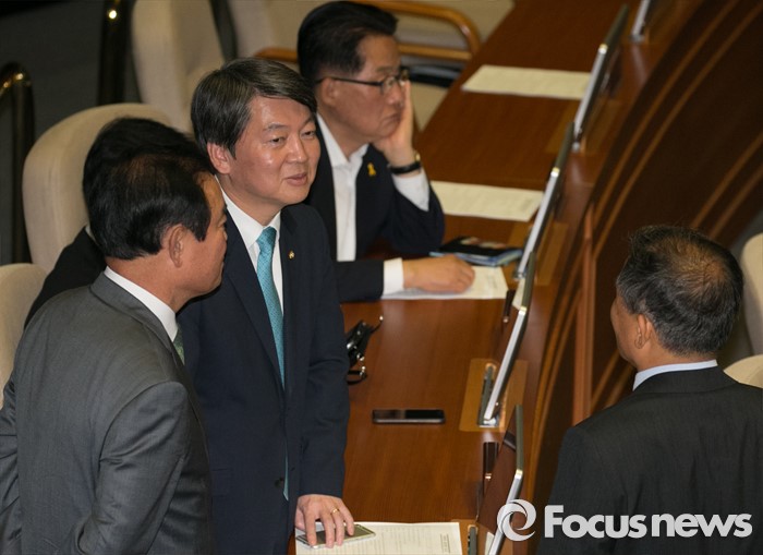 (서울=포커스뉴스) 19일 오전 서울 여의도 국회에서 열린 342회 국회(임시회) 1차 본회의에 참석한 안철수 국민의당 상임공동대표와 의원들이 대화하고 있다.