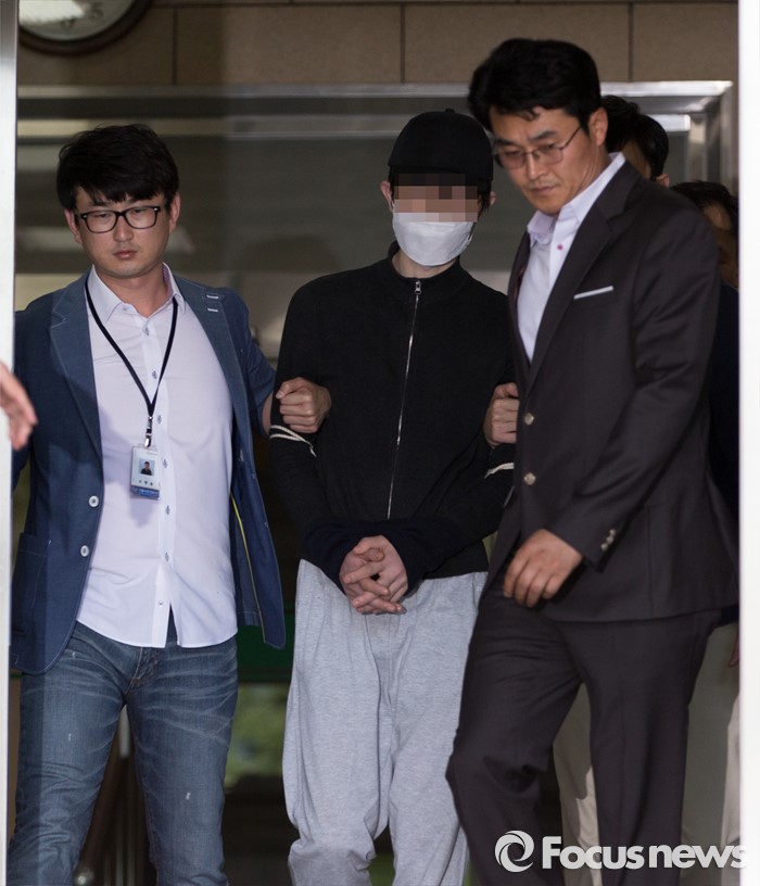 (서울=포커스뉴스) 지난 17일 서울 강남역 인근 노래방 화장실에서 직장인 A씨(23·여)를 흉기로 살해한 혐의를 받고 있는 김모(34)씨가 구속전피의자심문(영장실질심사)을 받기 위해 19일 오후 서울 서초경찰서를 나서고 있다.