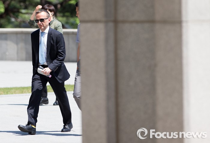 (서울=포커스뉴스) 울리히 호스터바흐 옥시 코리아 재무담당 이사가 소환조사를 받기 위해 19일 오후 서울중앙지방검찰청으로 들어서고 있다.