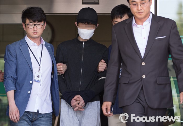 (서울=포커스뉴스) 지난 17일 서울 강남역 인근 노래방 화장실에서 직장인 A씨(23·여)를 흉기로 살해한 혐의를 받고 있는 김모(34)씨가 구속전피의자심문(영장실질심사)을 받기 위해 19일 오후 서울 서초경찰서를 나서고 있다.