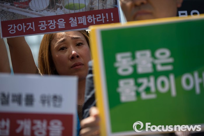 (서울=포커스뉴스) 19일 오후 서울 종로구 정부서울청사앞에서 동물자유연대 및 시민단체들이 강아지 공장 문제 해결을 촉구하며 퍼포먼스를 하고 있다.