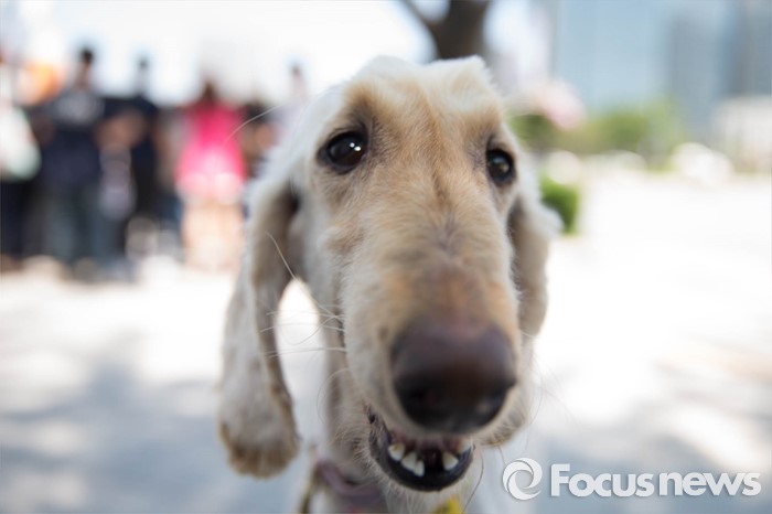 (서울=포커스뉴스) 19일 오후 서울 종로구 정부서울청사앞에서 동물자유연대 및 시민단체들이 강아지 공장 문제 해결을 촉구하며 기자회견을 하고 있다. 실제 강아지 공장에서 구조된 번식견 신디의 모습.