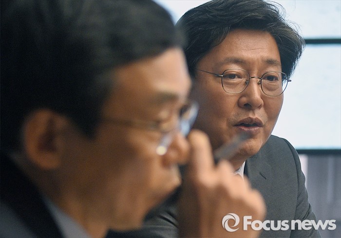 (서울=포커스뉴스) 현장조사에 나선 이춘석(오른쪽) 더불어민주당 어버이연합 등 불법 자금 지원 의혹 규명 진상조사 태스크포스(TF) 위원장이 19일 오후 서울 여의도 전국경제인연합회관에서 이승철 상근부회장 등과 간담회를 하고 있다.