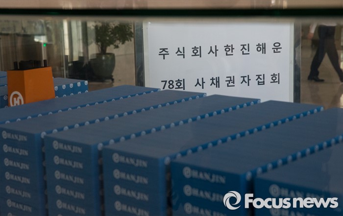 (서울=포커스뉴스) 한진해운의 채무조정을 위한 첫 사채권자 집회가 열린 19일 오후 서울 영등포구 한진해운 본사 로비에 선박 모형이 보이고 있다.