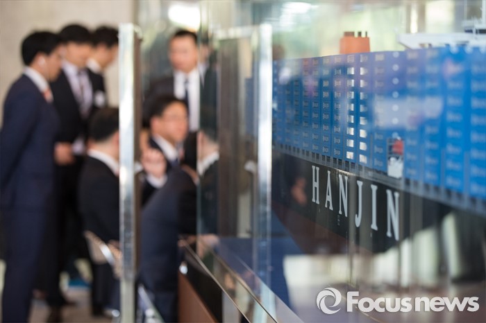 (서울=포커스뉴스) 한진해운의 채무조정을 위한 첫 사채권자 집회가 열린 19일 오후 서울 영등포구 한진해운 본사 로비에서 사채권자 출석을 위해 안내자들이 기다리고 있다.