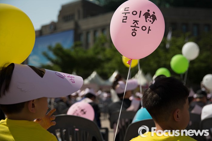 (서울=포커스뉴스) 19일 오후 서울시청광장에서 열린 '제1회 건강가정 다출산 범국민대회'에 아이들이 참석하고 있다.
