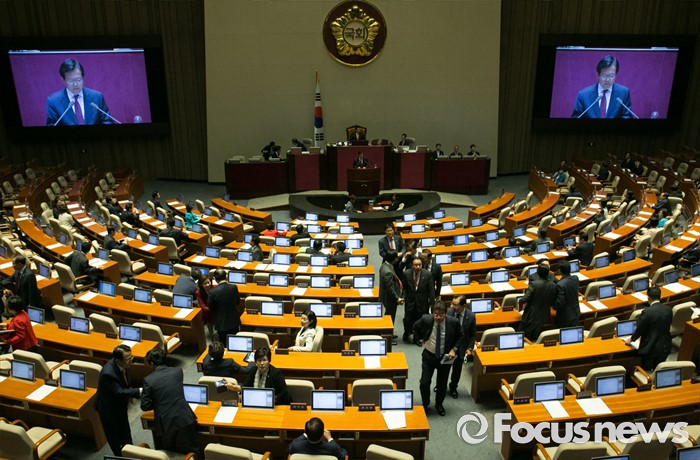 (서울=포커스뉴스) 19일 오후 서울 여의도 국회에서 열린 342회 국회(임시회) 1차 본회의에 참석한 의원들이 안건 의결 후 진행된 김기준 더불어민주당 의원의 5분 자유발언 중 퇴장하고 있다.
