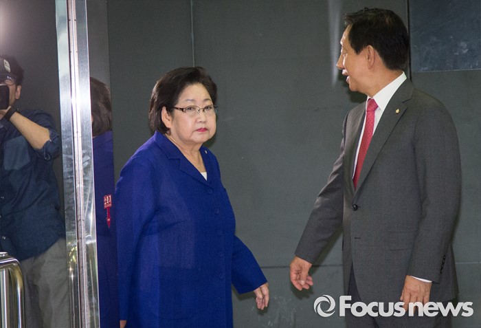 (서울=포커스뉴스) 19일 오후 서울 여의도 한 음식점에서 19대 국회 마지막 본회의를 마친 김을동 새누리당 의원이 김무성 전 대표 주재로 열린 식사모임에 참석하고 있다.