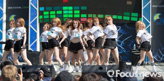 (서울=포커스뉴스) 19일 오후 서울 종로구 성균관대 캠퍼스에서 걸그룹 우주소녀의 멤버들이 'Y24 스쿨어택' 행사에 참여하고 있다.