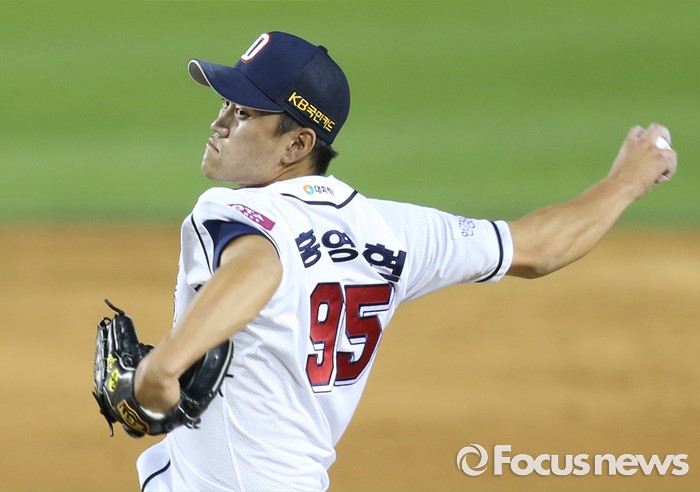 (서울=포커스뉴스) 19일 서울 잠실구장에서 열린 2016프로야구 KIA-두산 경기 4회초 두산의 두번째 투수 홍영현이 투구하고 있다.