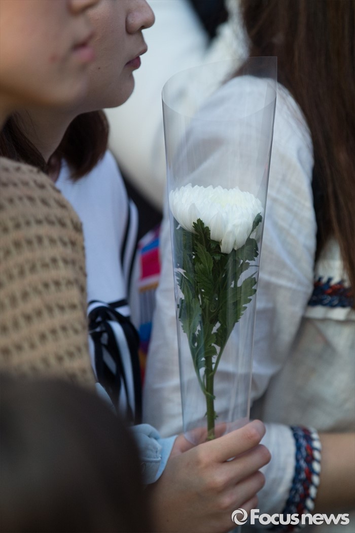 (서울=포커스뉴스) 19일 오후 서울 서초구 강남역 10번출구에서 시민들이 '강남 묻지마 살인' 피해자를 추모하고 있다.