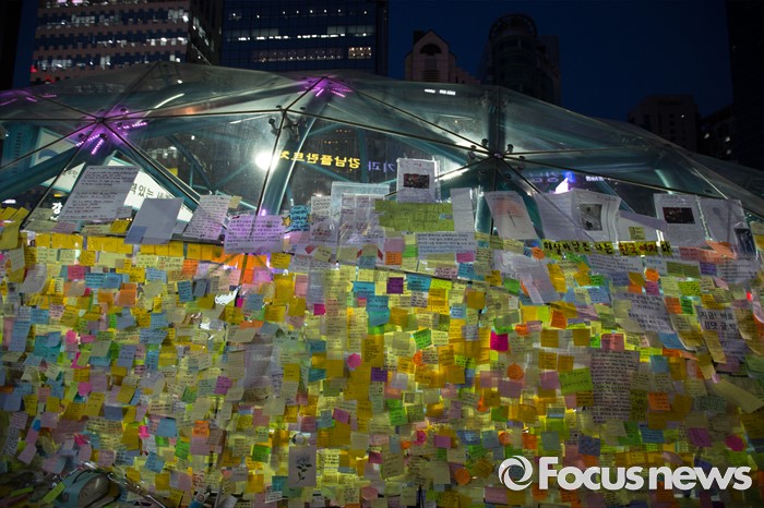 (서울=포커스뉴스) 19일 오후 서울 서초구 강남역 10번출구에서 시민들이 '강남 묻지마 살인' 피해자를 추모하고 있다.