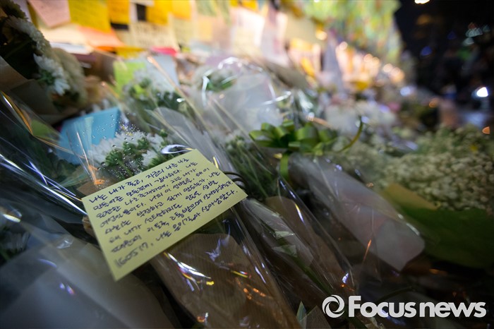 (서울=포커스뉴스) 19일 오후 서울 서초구 강남역 10번출구에서 시민들이 '강남 묻지마 살인' 피해자를 추모하고 있다.