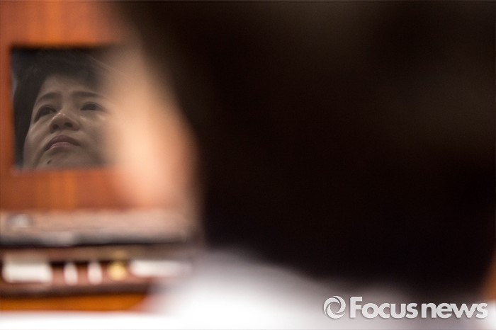 (서울=포커스뉴스) 강남역 '묻지마 살인'으로 논란이 되고 있는 가운데 20일 오전 서울 종로구 정부서울청사에서 열린 사회관계장관회의에 자리한 강은희 여성가족부 장관의 얼굴이 모니터에 비치고 있다.