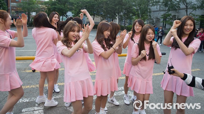 (서울=포커스뉴스) 20일 오전 서울 영등포구 KBS에서 걸그룹 IOI의 멤버들이 생방송 뮤직뱅크 리허설에 참여하기 위해 이동하던 중 인터뷰를 하고 있다.