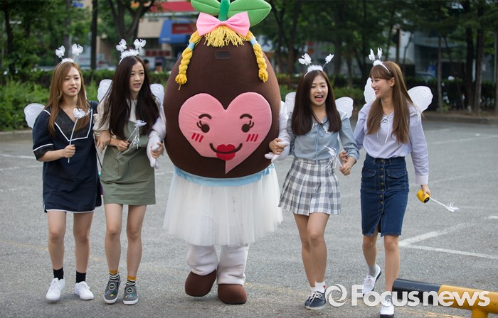 (서울=포커스뉴스) 20일 오전 서울 영등포구 KBS에서 걸그룹 에이프릴의 멤버들이 생방송 뮤직뱅크 리허설에 참여하기 위해 이동하고 있다.