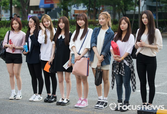 (서울=포커스뉴스) 20일 오전 서울 영등포구 KBS에서 걸그룹 러블리즈의 멤버들이 생방송 뮤직뱅크 리허설에 참여하기 위해 이동하던 중 포토타임을 갖고 있다.