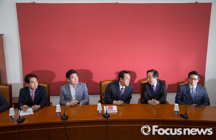 (서울=포커스뉴스) 정진석(가운데) 새누리당 원내대표와 원유철(왼쪽 두번째) 전 원내대표 등 중진의원들이 20일 오전 서울 여의도 국회에서 열린 원내지도부-중진의원 연석회의에 참석해 논의하고 있다.