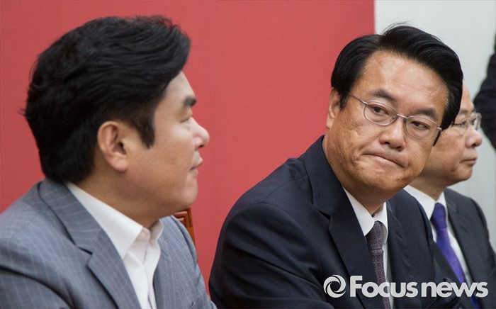 (서울=포커스뉴스) 정진석 새누리당 원내대표가 20일 오전 서울 여의도 국회에서 열린 원내지도부-중진의원 연석회의에 참석해 심각한 표정을 짓고 있다. 왼족은 원유철 전 원내대표.