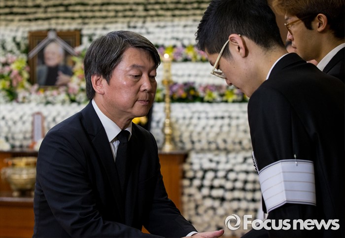 (서울=포커스뉴스) 20일 오전 서울 송파구 아산병원 장례식장에 마련된 故 김재순 전 국회의장의 빈소를 찾은 안철수 국민의당 상임공동대표가 조문을 마친 후 유가족들을 위로하고 있다.