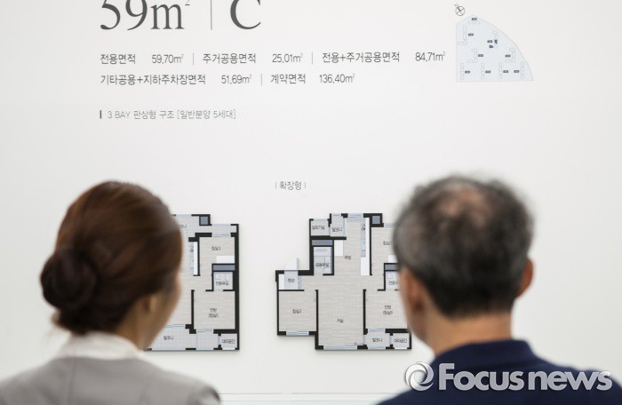 (서울=포커스뉴스) 20일 오전 서울 송파구 래미안 하우스에 개관한 래미안 과천 센트럴 스위트 견본주택을 찾은 한 시민이 관련 설명을 듣고 있다.