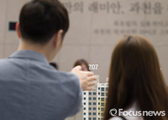 (서울=포커스뉴스) 20일 오전 서울 송파구 래미안 하우스에 개관한 래미안 과천 센트럴 스위트 견본주택을 찾은 시민들이 모형도를 살펴보고 있다.