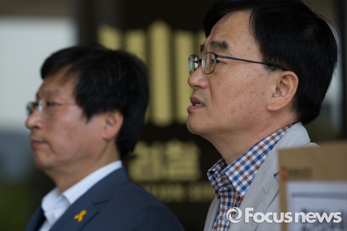 (서울=포커스뉴스) 전국언론노동조합이 MBC파업 개입 국정원 고소 및 손해배상 청구 관련 고발장 접수를 위해 20일 오전 서울중앙지방검찰청으로 들어가기 전 기자회견을 하고 있다.