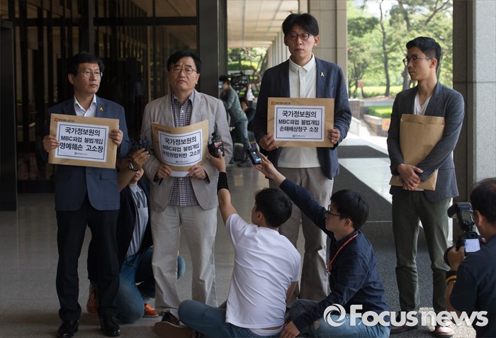 (서울=포커스뉴스) 전국언론노동조합이 MBC파업 개입 국정원 고소 및 손해배상 청구 관련 고발장 접수를 위해 20일 오전 서울중앙지방검찰청으로 들어가기 전 기자회견을 하고 있다.