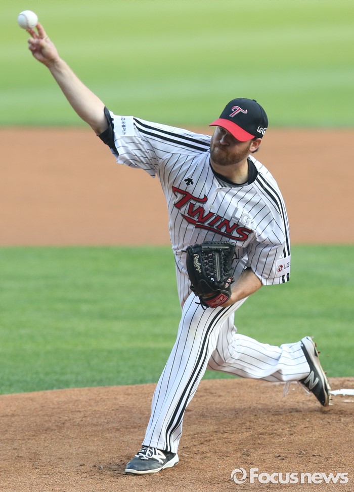 (서울=포커스뉴스) 20일 서울 잠실구장에서 열린 2016 프로야구 넥센-LG 경기에서 1회초 LG 선발투수 코프랜드가 투구하고 있다.