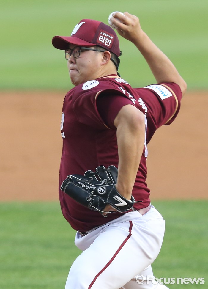 (서울=포커스뉴스) 20일 서울 잠실구장에서 열린 2016 프로야구 넥센-LG 경기에서 1회말 넥센 선발투수 박주현이 투구하고 있다.