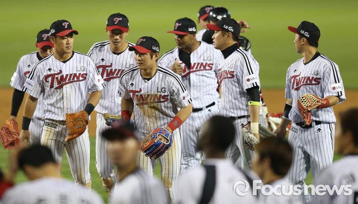 (서울=포커스뉴스) 20일 서울 잠실구장에서 열린 2016 프로야구 넥센-LG 경기에서 역전승한 LG 선수들이 그라운드에서 나오고 있다.