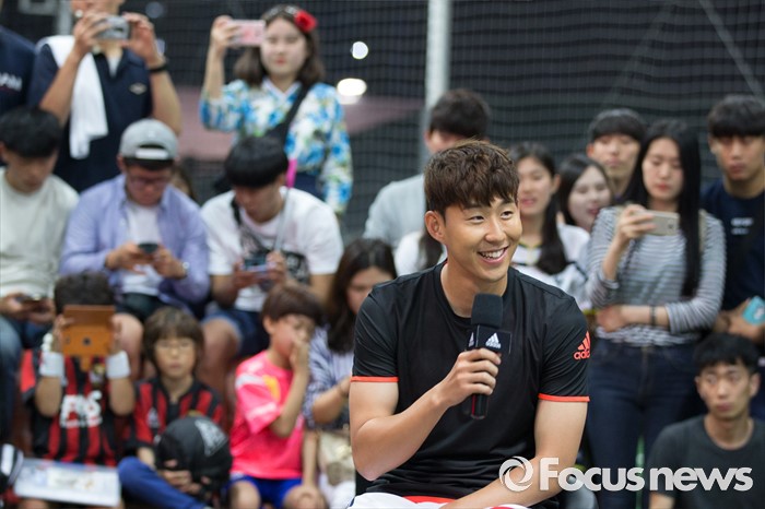 (서울=포커스뉴스) 손흥민이 20일 오후 서울 용산구 아이파크몰 풋살경기장에서 열린 아디다스 손흥민 팬미팅 및 사인회에서 팬들과 근황토크를 하고 있다.