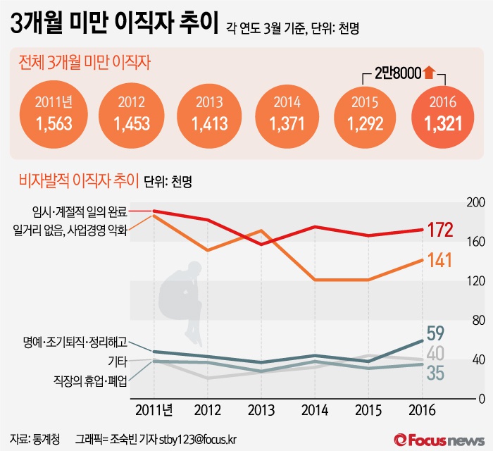 특히, 최근 들어 폐업·정리해고 등 비자발적인 사유로 이직하는 사람이 늘어나는 것으로 나타났다.