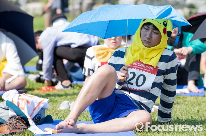 (서울=포커스뉴스) 22일 오후 서울 용산구 이촌 한강공원에서 열린 '한강 멍때리기 대회'에서 참가자들이 멍하게 앉아 있다.