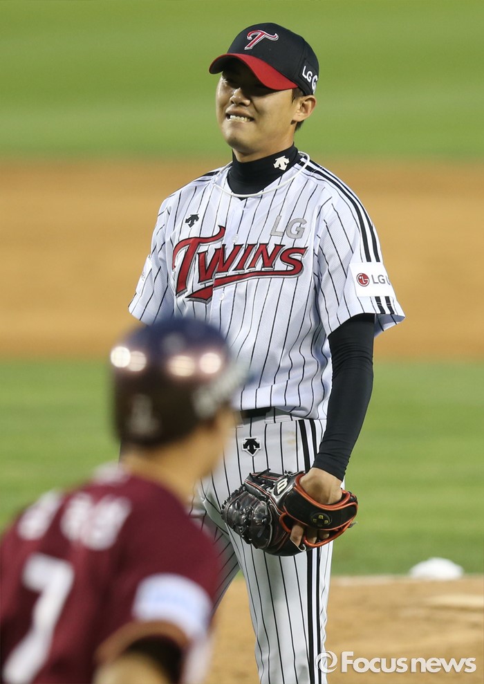 (서울=포커스뉴스) 22일 서울 잠실구장에서 열린 2016 프로야구 넥센-LG 경기 9회초 2사 1루에서 LG 마무리 투수 임정우가 넥센 김하성을 볼넷으로 진루시키며 아쉬워하고 있다.