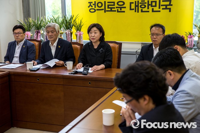 (서울=포커스뉴스) 심상정(왼쪽 세 번째) 정의당 상임대표가 23일 오전 서울 여의도 국회에서 열린 상무위원회에 참석해 모두발언 하고 있다.