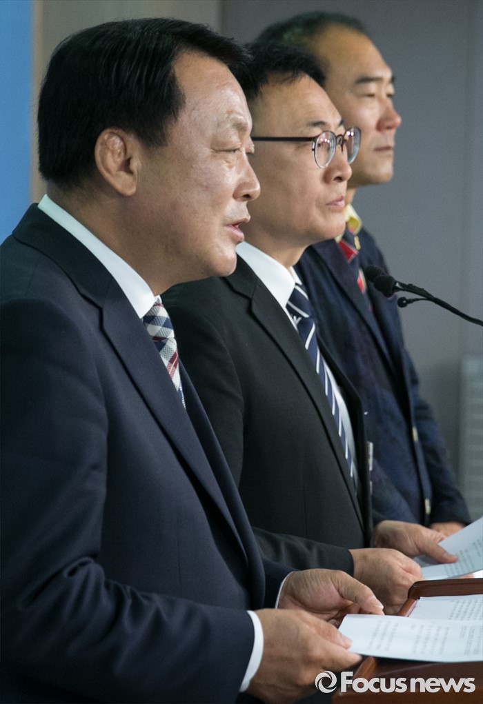 (서울=포커스뉴스) 23일 오전 서울 여의도 국회 정론관에서 임채호(왼쪽부터) 경기도의회 의원, 이광희 충북도의회 의원, 박재만 전북도의회 의원 등이 지방의원의 후원회 제한한 정치자금법 제6호에 대한 헌법소원심판 청구 기자회견을 하고 있다.