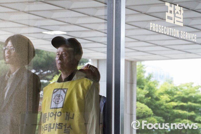 (서울=포커스뉴스) 23일 오전 서울 서초구 서울중앙지검 앞에서 가습기 살균제 피해자와 가족모임 관계자들이 기자회견을 열고 유해독성물질을 승인‧방치한 국가를 상대로 법정소송에 돌입할 것을 밝히고 있다. 피고발인은 강현욱·김명자 전 환경부 장관과 가습기 살균제 성분들이 승인될 당시 환경부 환경보건관리과 국장·과장 등 실무진 6명 이다.