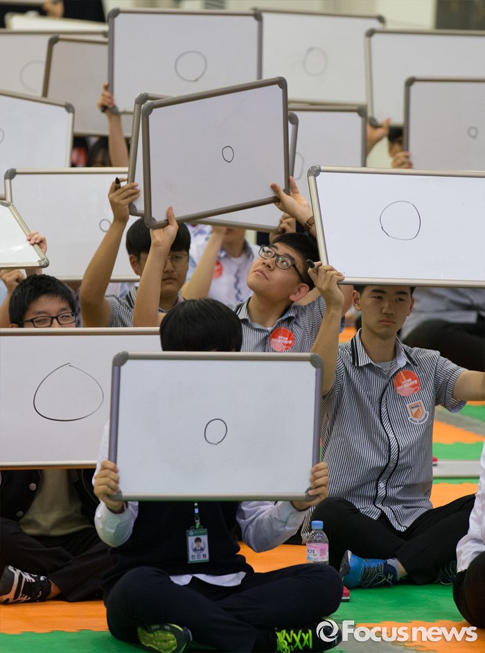 (세종=포커스뉴스) 23일 오후 세종시 정부세종컨벤션센터에서 민주평화통일자문회의 주최로 열린 2016 민주평통 통일골든벨 세종·충남대회에 참가한 학생들이 문제를 풀고 있다.