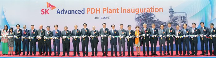 이날 기념식에는 박맹우 국회의원, 김기현 울산시장, 최창원 SK 부회장, 김정근 SK가스 사장, 김철진 SK 어드밴스드 사장, 모하메드 알 파후드(Mohammad Al Farhood) 쿠웨이트 PIC 사장, (칼리파 알 물헴)Khalifa A. Al-Mulhem 사우디아라비아 APC 회장, 압둘라 알 가라위(Abdullah M. Al Garawi) 사우디 APC 사장 등 관계자 250여명이 참석한 했다. <사진제공=산업통상자원부>
