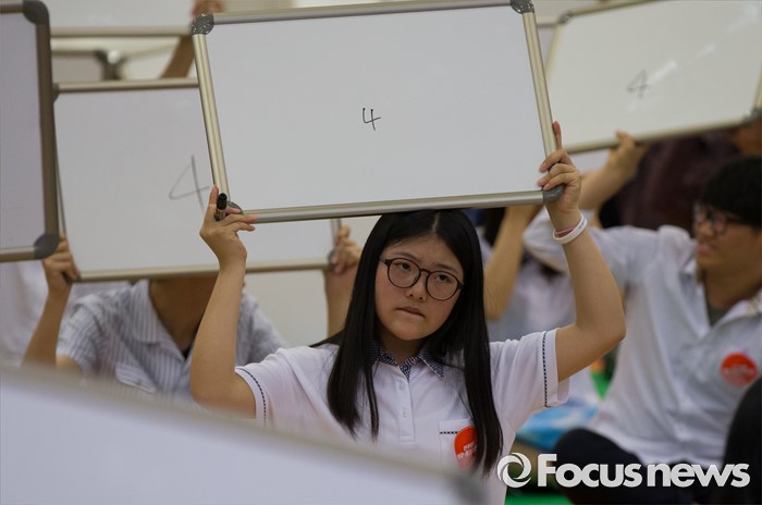 (세종=포커스뉴스) 23일 오후 세종시 정부세종컨벤션센터에서 민주평화통일자문회의 주최로 열린 2016 민주평통 통일골든벨 세종·충남대회에 참가한 학생들이 문제를 풀고 있다.