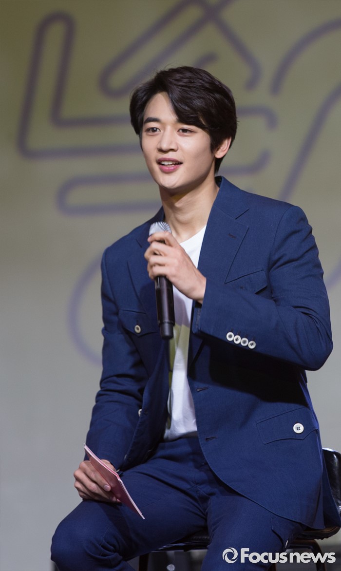 (서울=포커스뉴스) 23일 오후 서울 강남구 플래툰 쿤스트할레에서 열린 가수 종현의정규 1집 앨범 '좋아' 쇼케이스에 참석한 가수 민호가 인사말을 하고 있다.