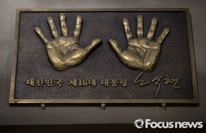 (김해=포커스뉴스)故 노무현 전 대통령 서거 7주기인 23일 오후 경남 김해시 진영읍 봉하마을 '추모의 집'에 노무현 전 대통령의 핸드프린팅이 전시되어 있다.
